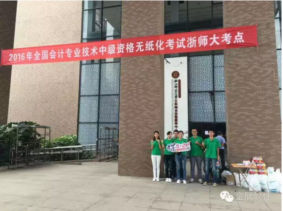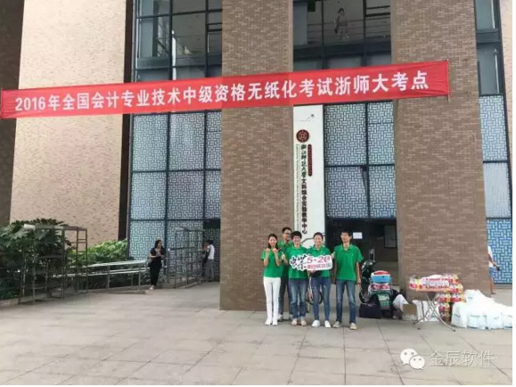 初秋的天氣溫和宜人,2016年全國(guó)會(huì)計(jì)專(zhuān)業(yè)技術(shù)中級(jí)資格考試今天開(kāi)始啦!浙江師范大學(xué)考點(diǎn)的考生們陸續(xù)趕到考場(chǎng),準(zhǔn)備開(kāi)始今天的考試。金華金辰軟件有限公司的小伙伴們已經(jīng)早早的在浙師大考點(diǎn),為每位考生加油!