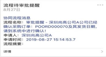 啟用采購協(xié)同管理的供應(yīng)商通過微信接收到同步的采購訂單信息后,對所屬的采購訂單確認(rèn)后進(jìn)行發(fā)貨。全程高效協(xié)同,實(shí)現(xiàn)有計(jì)劃的集中采購(微信端接收信息與處理)。